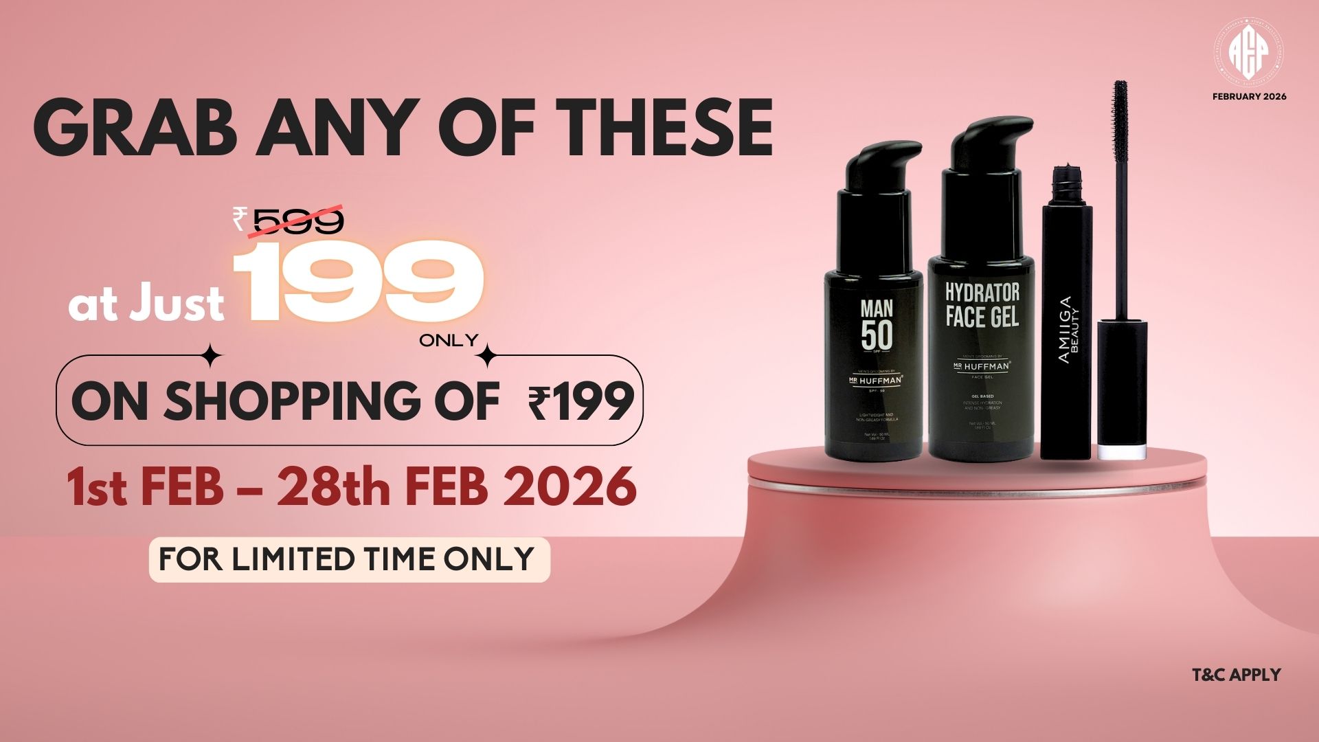 Offer: Place an order of just INR 199 & above (subtotal) & select any of the below mentioned product MRP valued of INR 599 at INR 199 only inclusive of all the taxes.